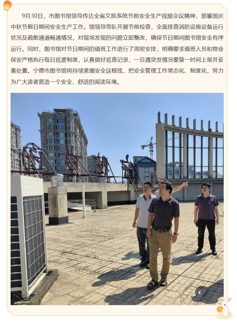 宁德市图书馆开展国庆中秋节前安全生产检查