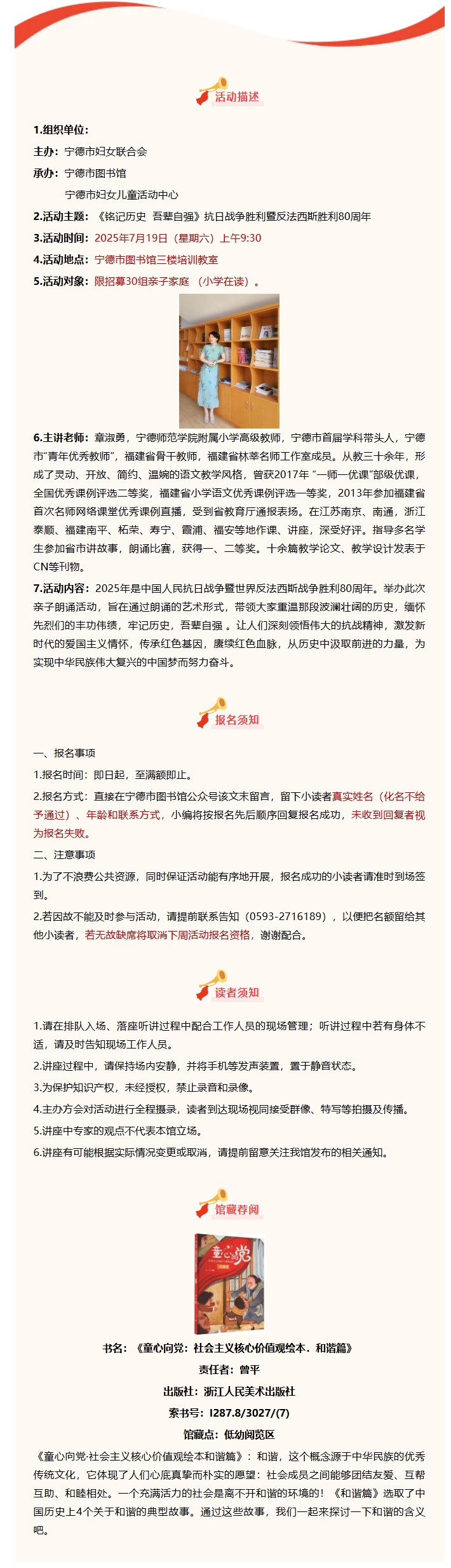 活动报名|“阅向未来”名家讲坛——“阅读暖童心 书香润家庭”第六期亲子诵读:《铭记历史 吾辈自强》