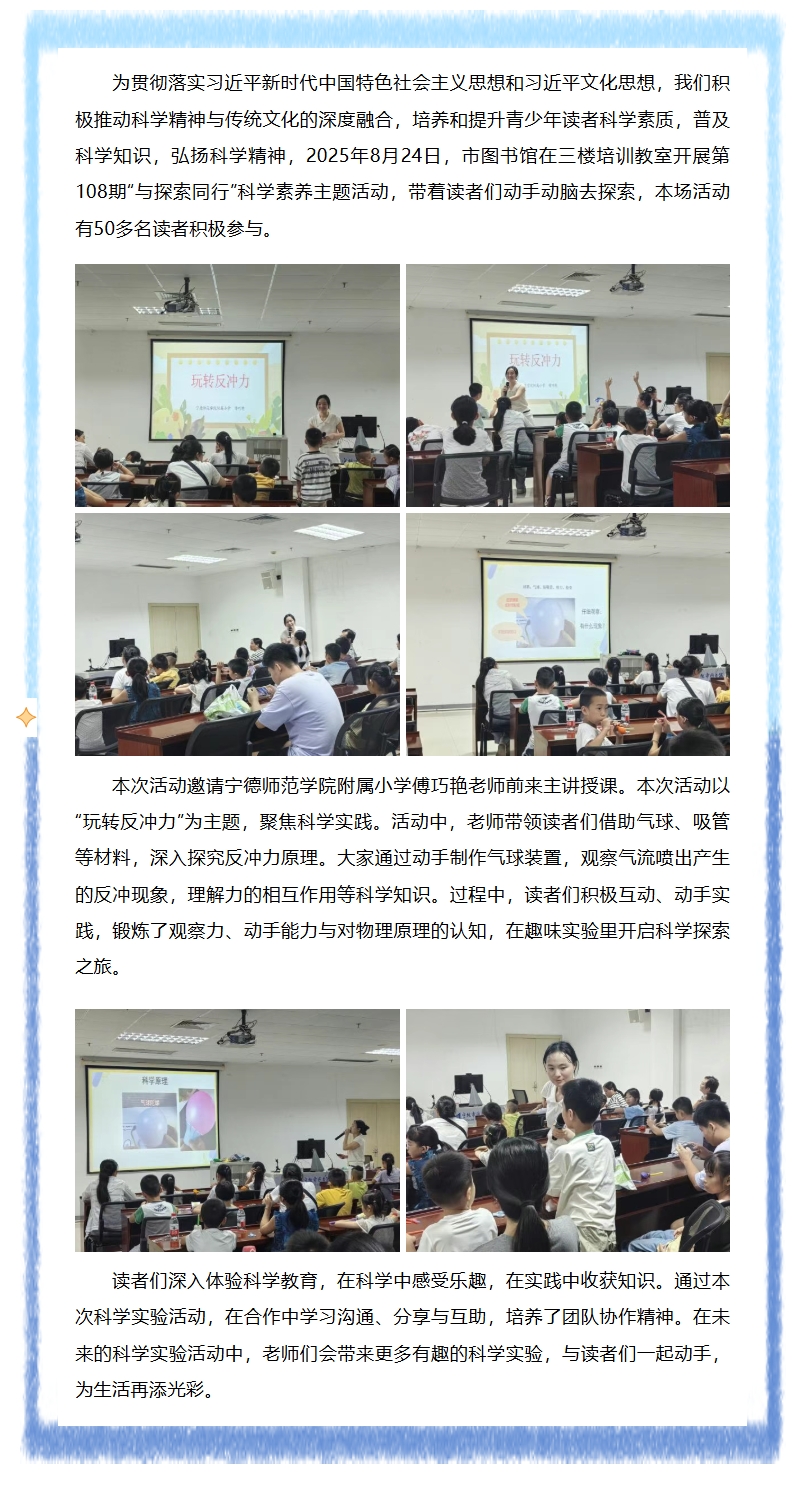 第108期“与探索同行”科学素养主题活动《玩转反冲力》成功举办