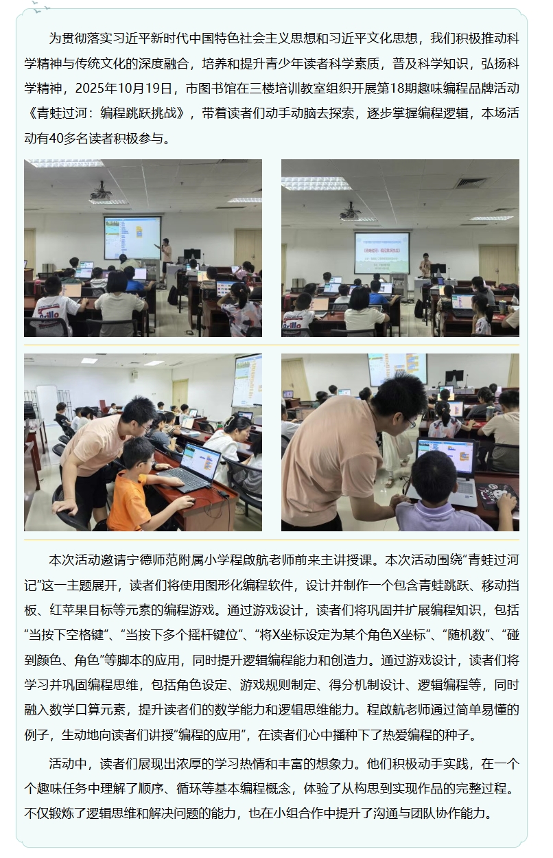 第18期趣味编程品牌活动《青蛙过河:编程跳跃挑战》成功举办