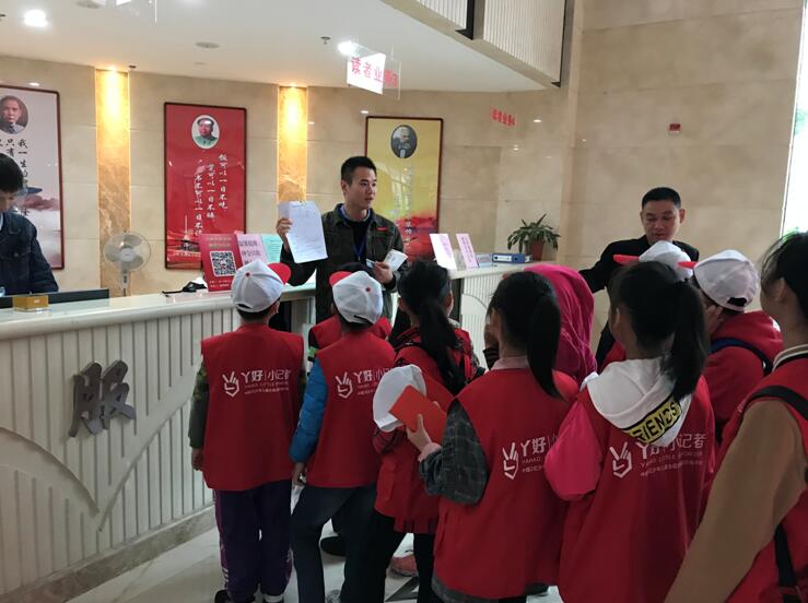 工作人员为小记者们讲解办理借阅卡流程