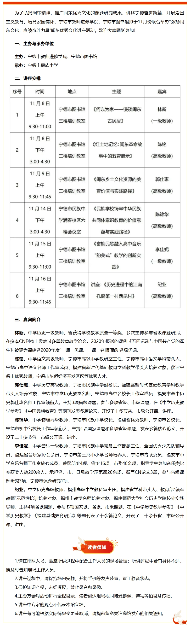 讲座预告│11月份闽东优秀文化讲座安排
