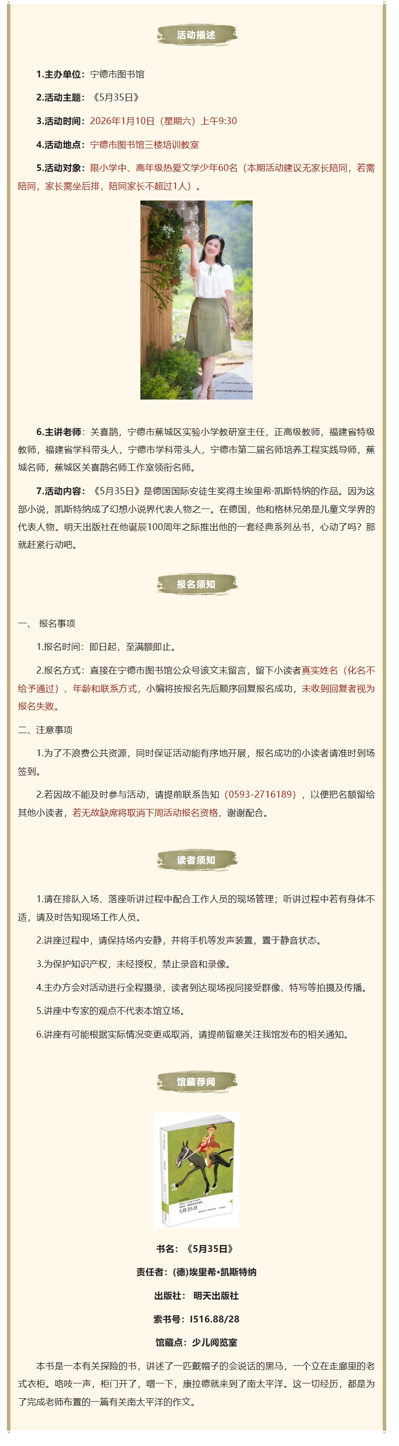 活动报名|第43期“宁图学堂·经典导读伴成长”品牌阅读活动:《5月35日》