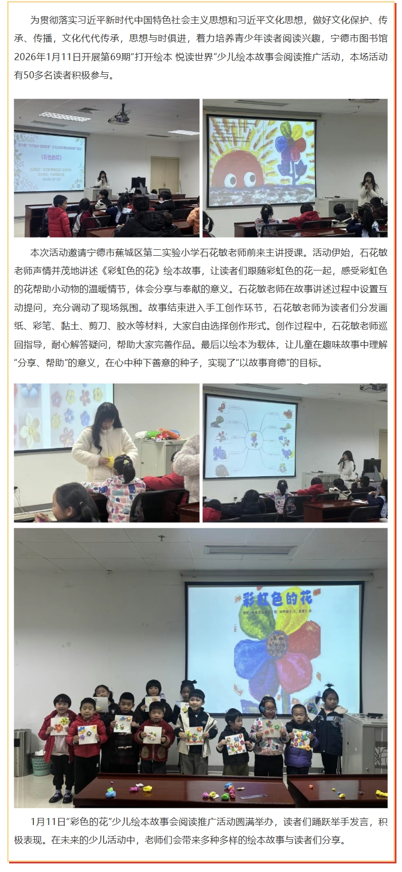 第69期“打开绘本 悦读世界”少儿绘本故事会阅读推广活动:“彩色的花”成功举办