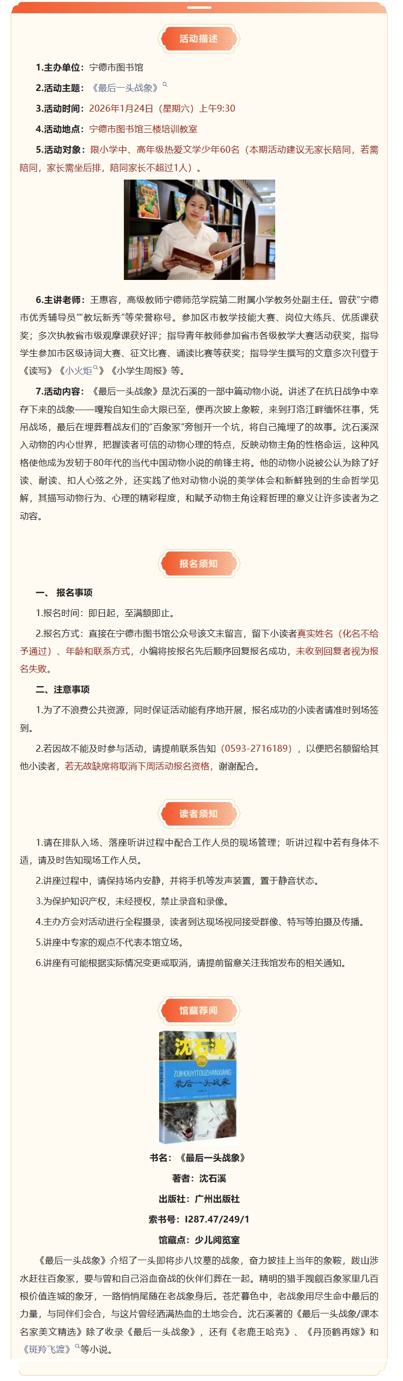 活动报名|第44期“宁图学堂·经典导读伴成长”品牌阅读活动:《最后一头战象》