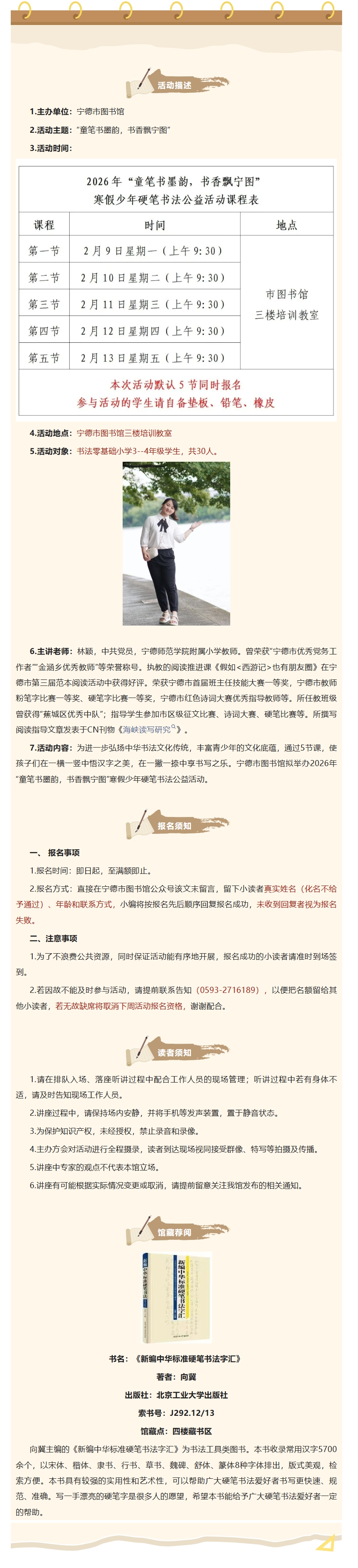 活动报名|2026年“童笔书墨韵,书香飘宁图”寒假青少年硬笔书法公益活动