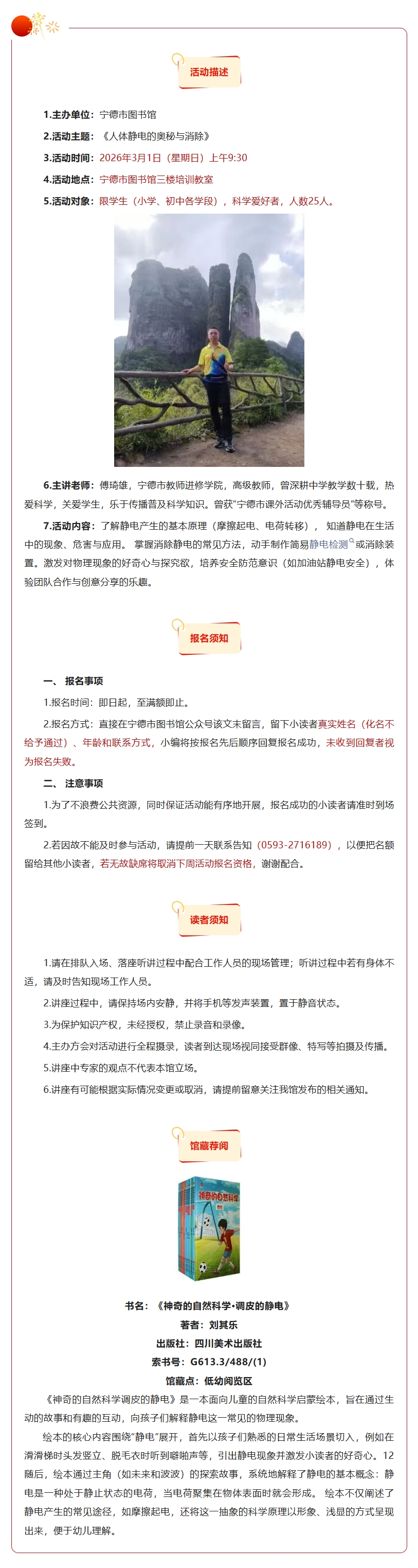 活动报名|第128期“与探索同行”科学素养主题活动:《人体静电的奥秘与消除》