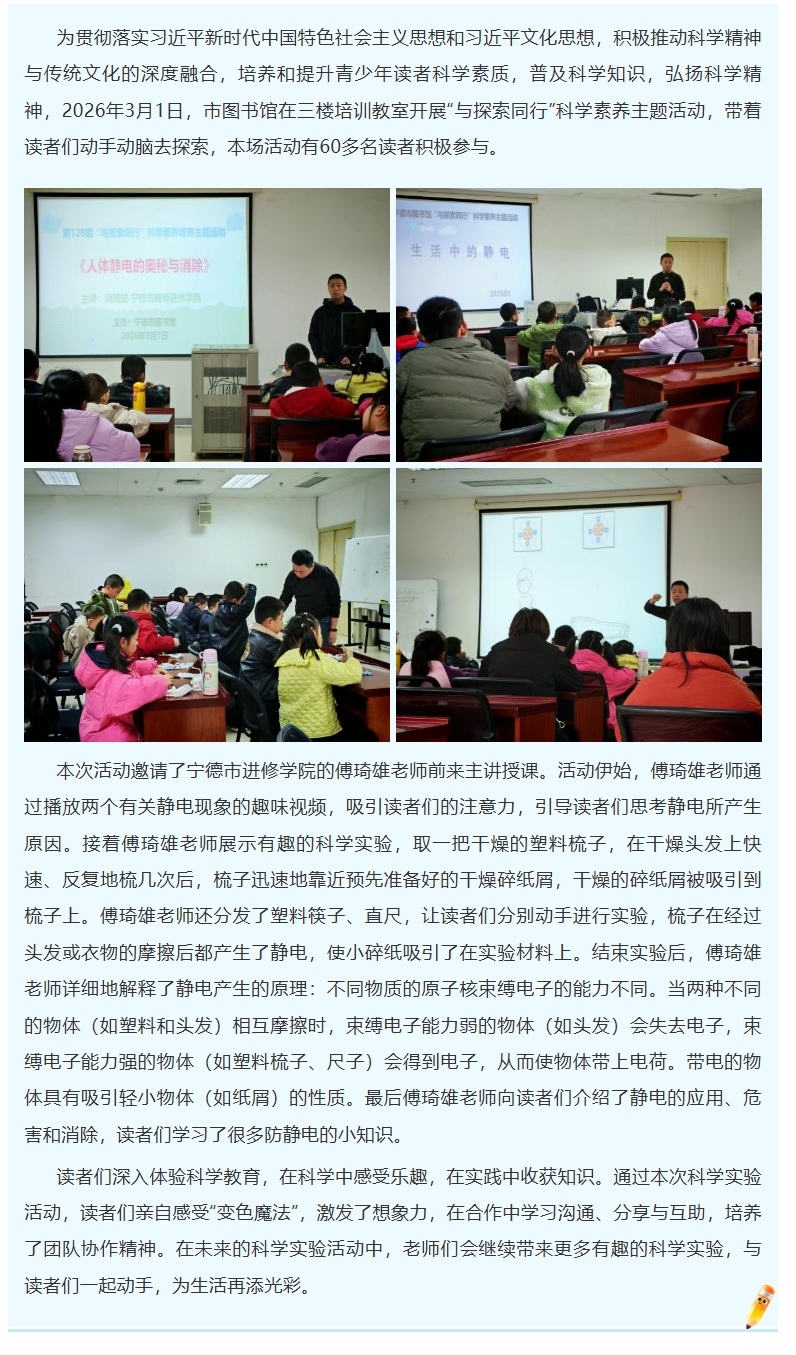 第129期“与探索同行”科学素养主题活动《人体静电的奥秘与消除》成功举办