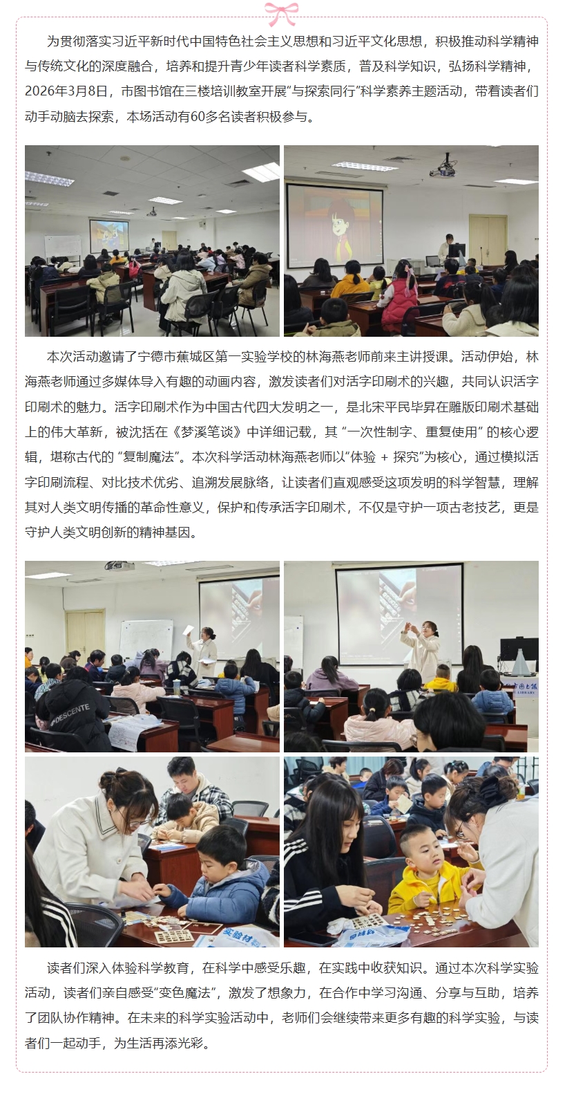 第130期“与探索同行”科学素养主题活动《活字印刷术——中国古代“复制魔法”》成功举办