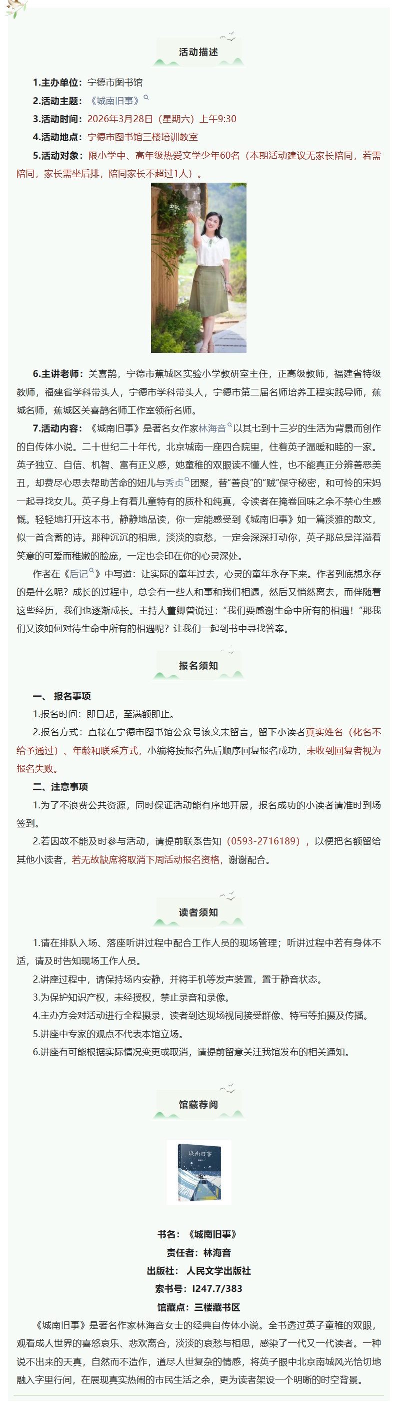 活动报名|第49期“宁图学堂·经典导读伴成长”品牌阅读活动:《城南旧事》
